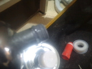 配管をするためにテーパーネジにシールテープを巻いて締め付けて